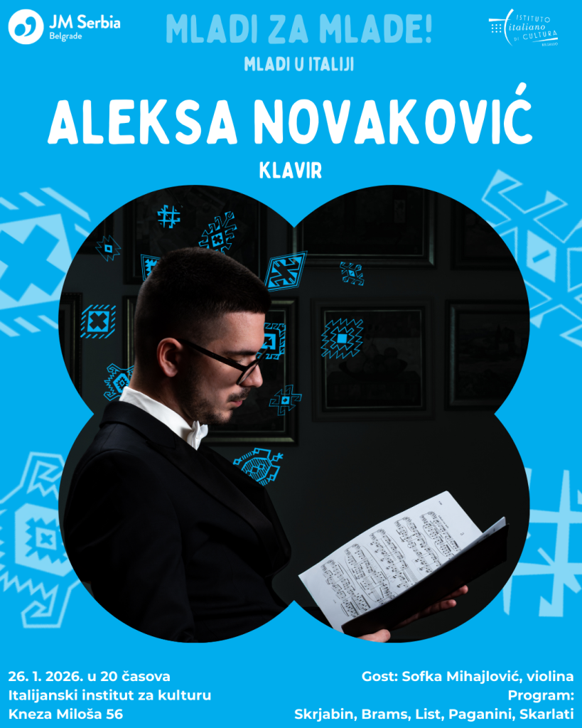 🎹 The concert features pianist Aleksa Novaković, who will present a programme with works by 🎼 Scriabin 🎶 Brahms ✨ Liszt 🎹 Paganini 🎻 and Scarlatti!